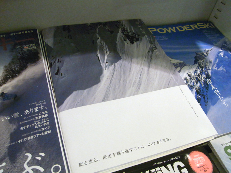 そこには雪を待ちきれないかのごとく、スキーにまつわる写真集やDVDがたくさん用意されてました