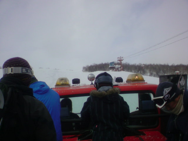 終盤はバタバタ、更新できなかったので振り返ります。14日はニセコワイスへ。ここは雪上車のみの運行。いろんなキャットに乗ったことがあるけど、立ち乗りは初めて…。まるで漁船に乗ってるみたいです。雪はウインドクラストぎみで難しい! ホント雪質によってターン感覚がまったく違い、おもしろいものです。午後からはガンガン降りだしました。