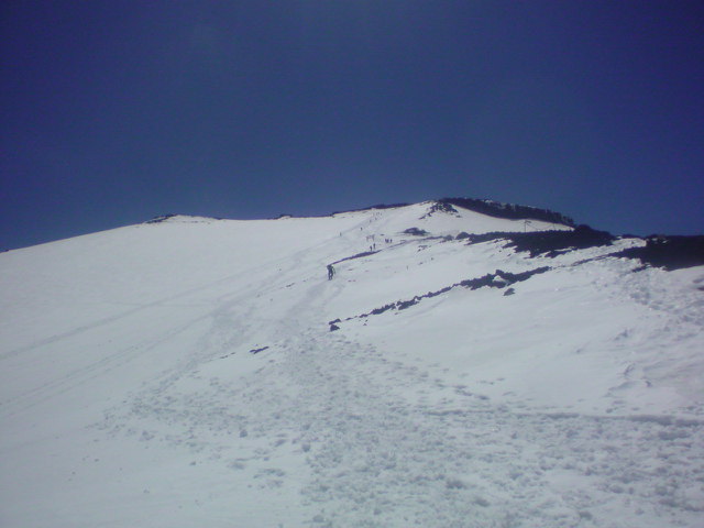 写真は八号目上部。山頂が見えているのに登っても登ってもたどり着かない…。