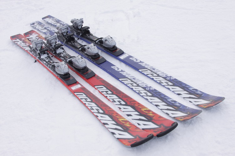 野沢温泉の玄関口に立ち、広々したスペースに、ファットスキーやツインチップ、ウエアや小物が並びます。