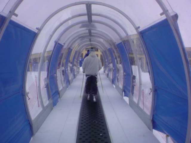 ニセコ花園ベースには今年、動く歩道が2本できました。キッズパーク用だけでなく、ベースセンターへのスロープもこれを使えば楽々。雪上の動く歩道って初めて乗ったかも…。しかも屋根つき! 豪雪ニセコでは有難いですね。